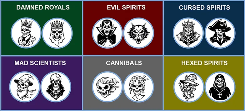 The 6 Ghost Families: Icons representing the distinct factions found in the Bar.