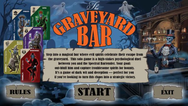 The Graveyard Bar blends strategic decision-making with a hauntingly beautiful, hand-crafted aesthetic. From the moment you load the screen, you aren’t just playing a game; you are stepping into a dark, theatrical narrative brought to life through rich visuals and chilling ambient soundscapes.