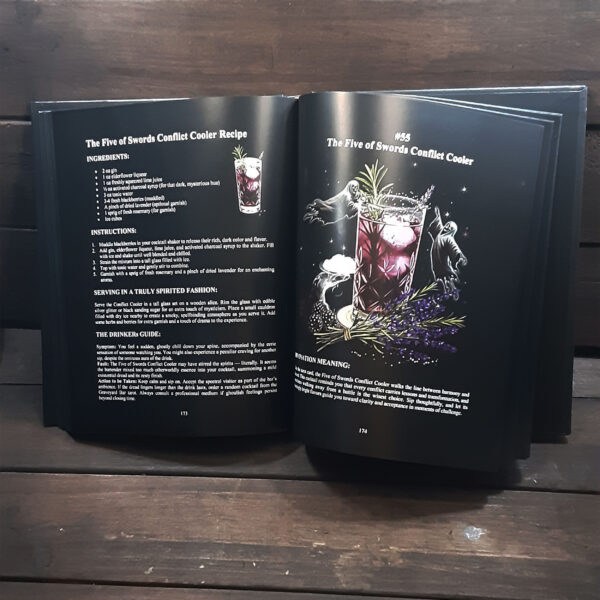 This comprehensivebartender’s guide introduces readers to78 beautifully crafted cocktail recipes, each one meticulously infused with the unique energy and symbolism of a specific card from the Major and Minor Arcana. Whether you are shaking up a drink inspired by the transformative power of Death or stirring a concoction for the celebration of The Three of Cups, every recipe serves as a sensory map to the metaphysical.